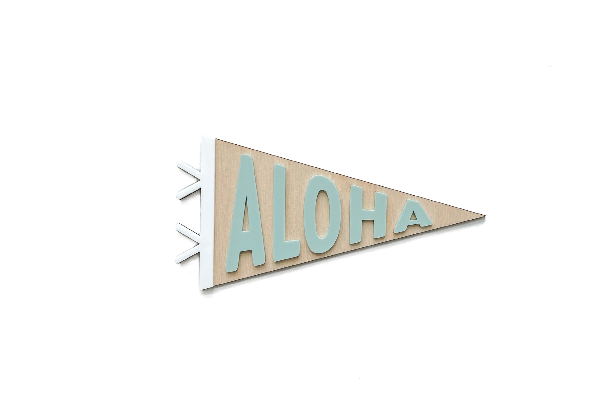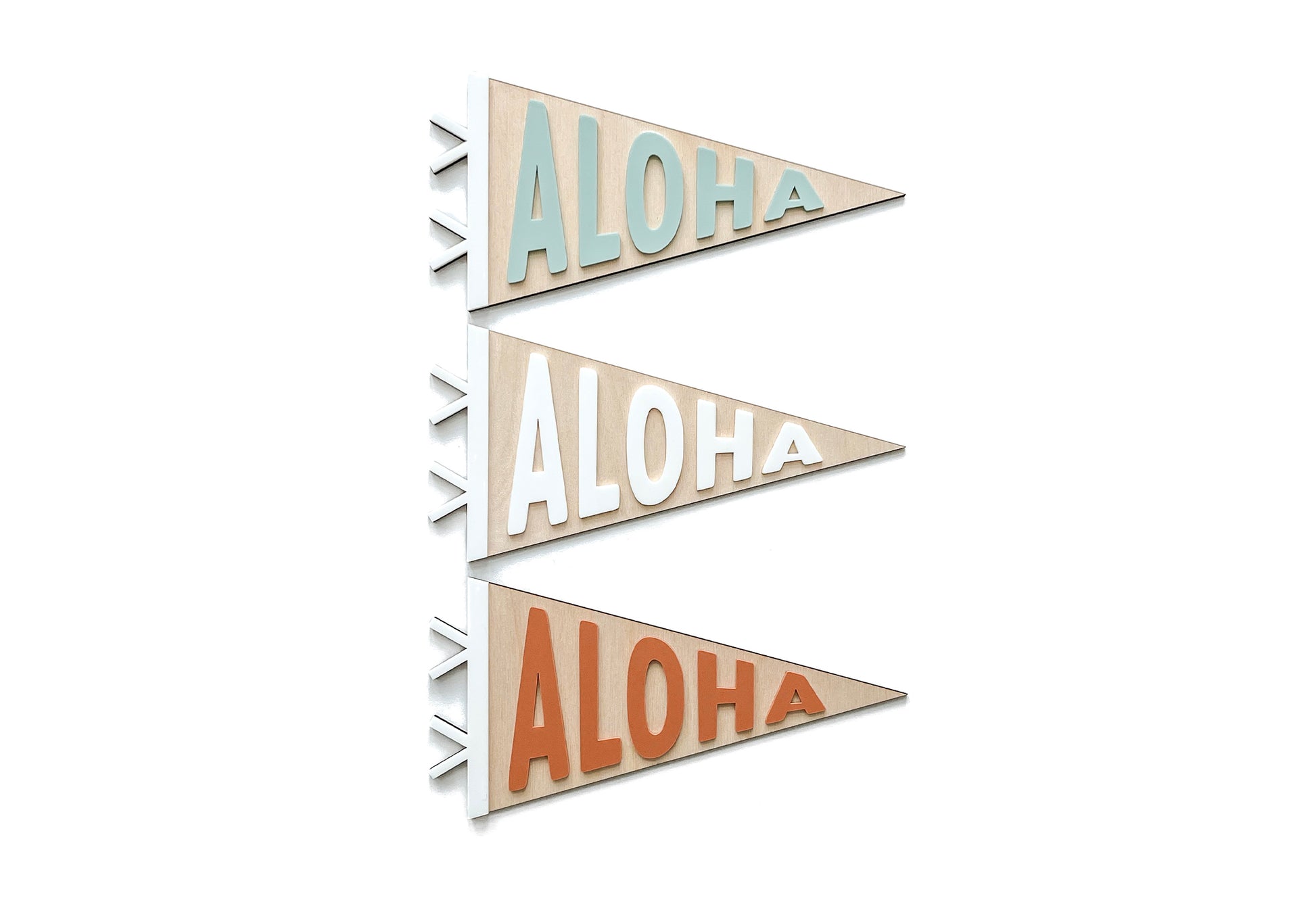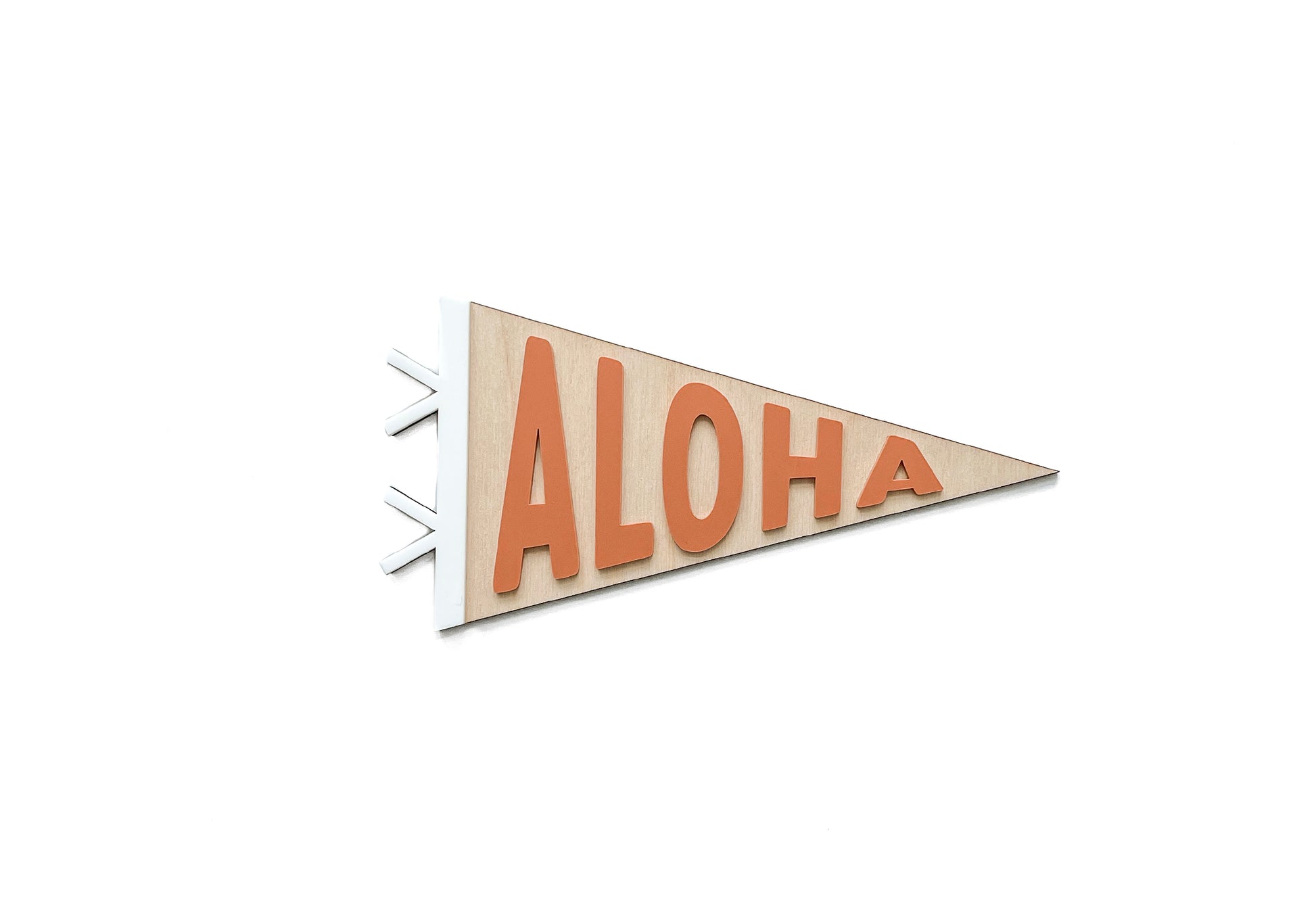 Complete your boho surfer kids room with our new Aloha shelf pennant. Each piece is laser cut and hand crafted with high quality wood and acrylic.