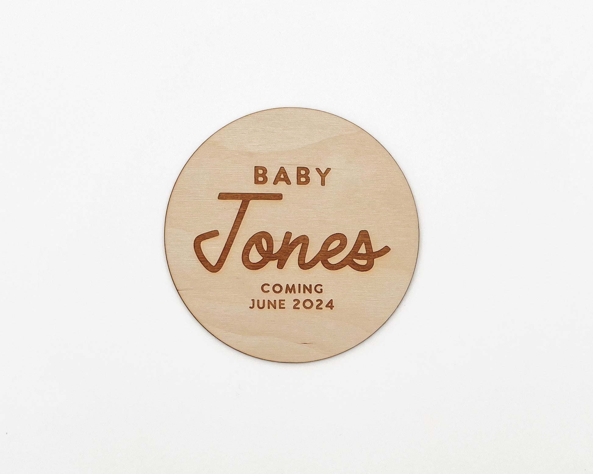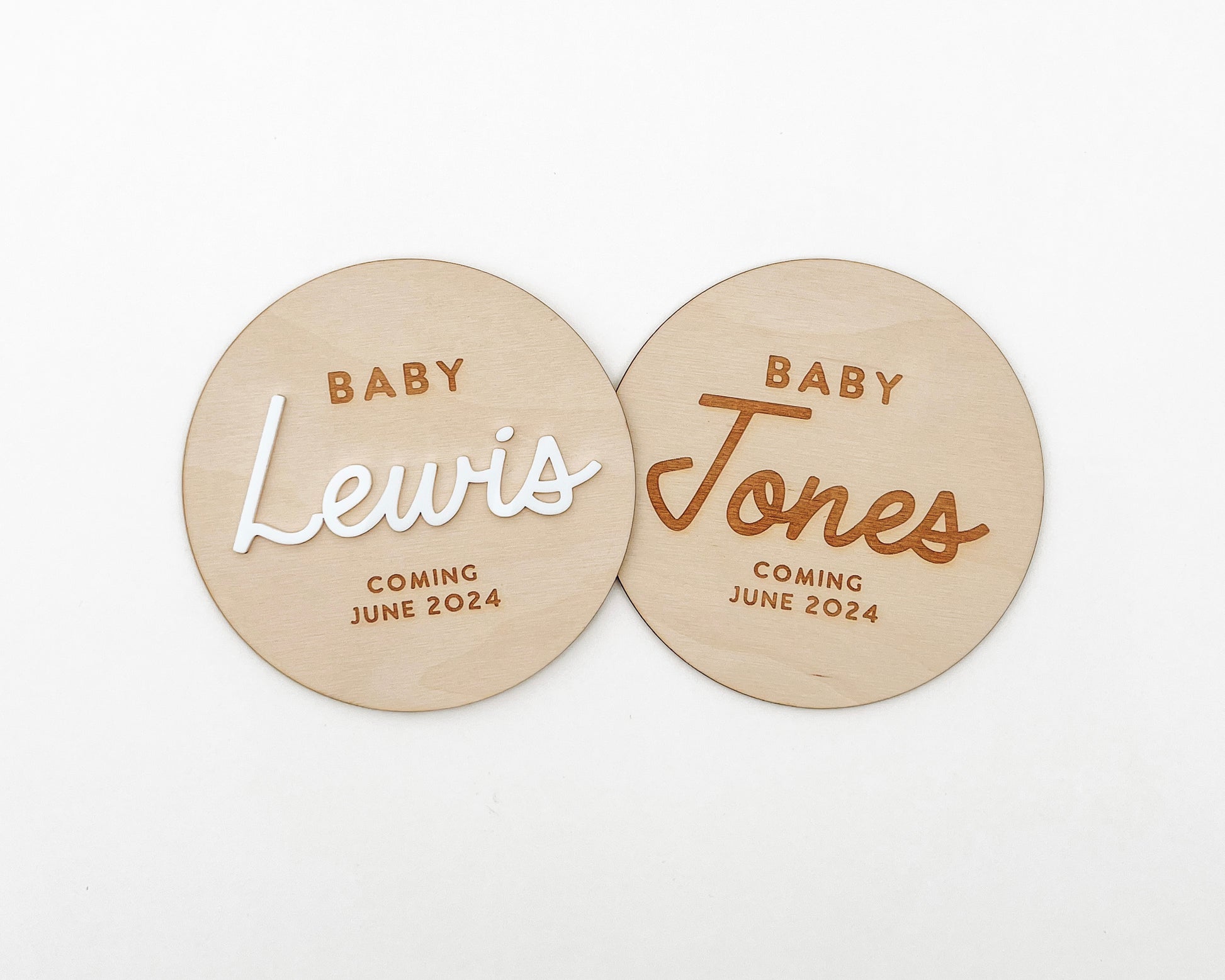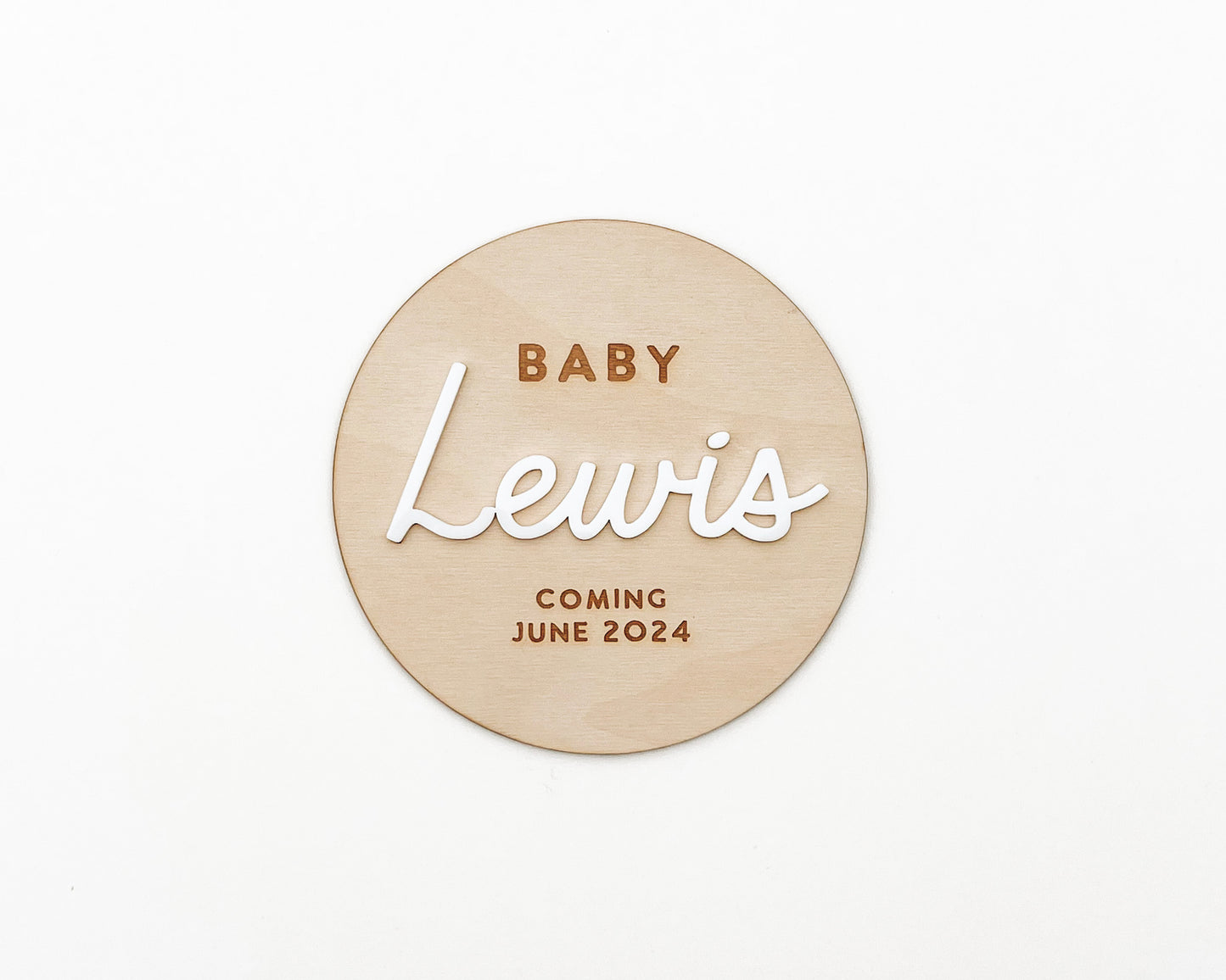 Announce your pregnancy with our custom name announcement sign.