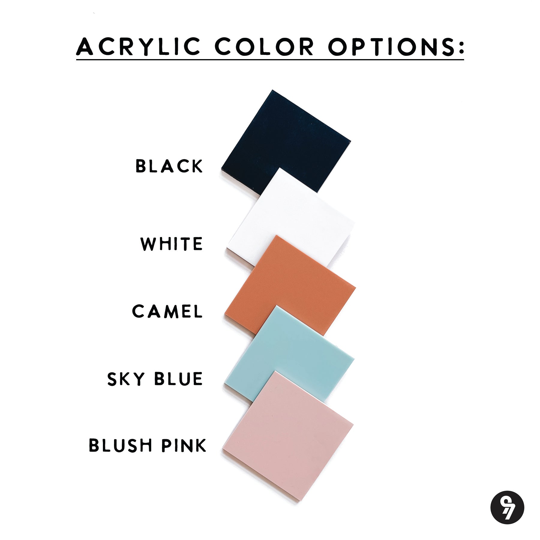Customize from 5 different colored acrylic options, 3 different background designs, and 3 different font options.