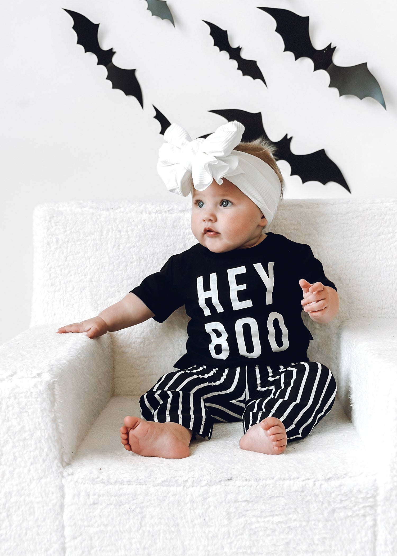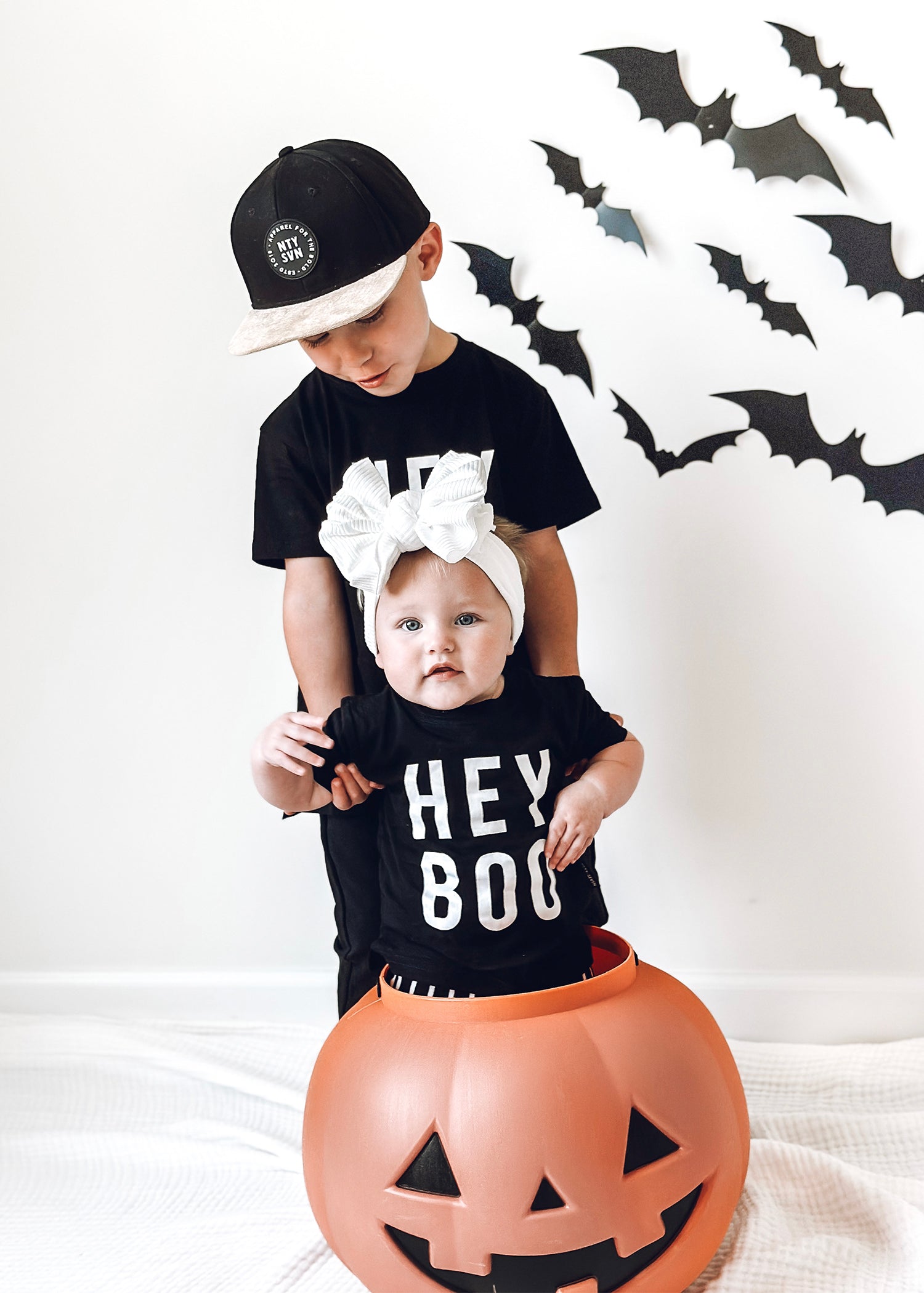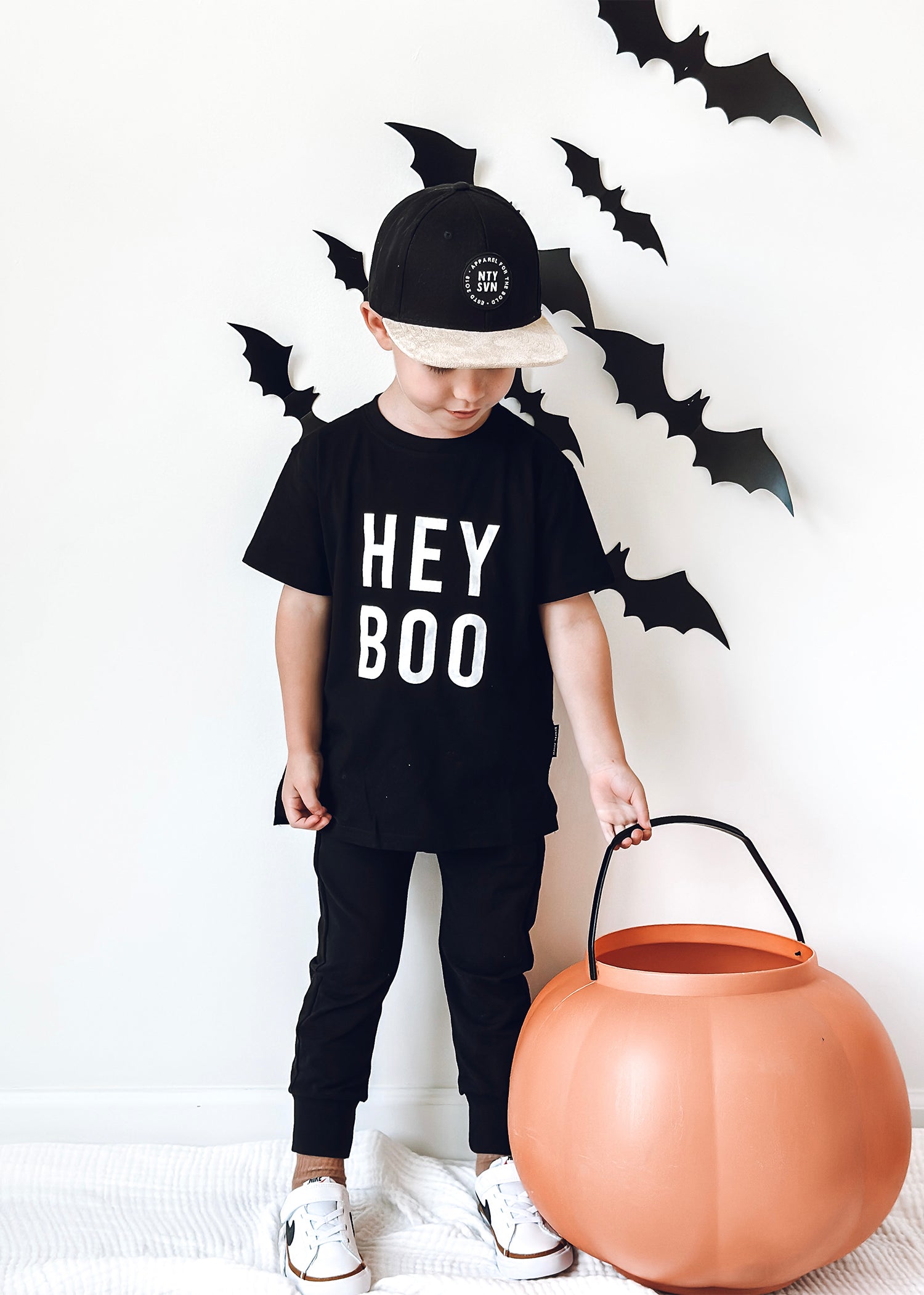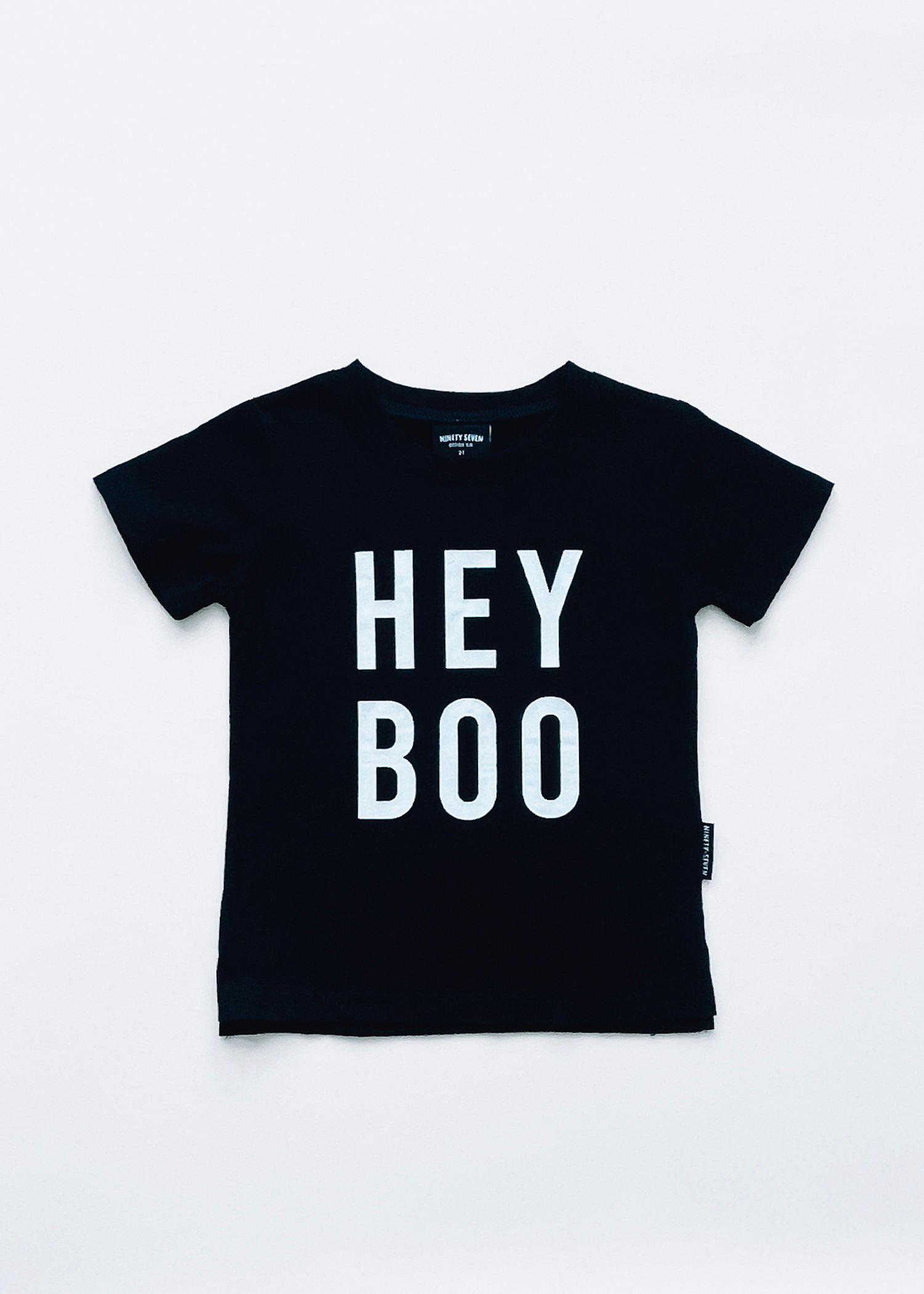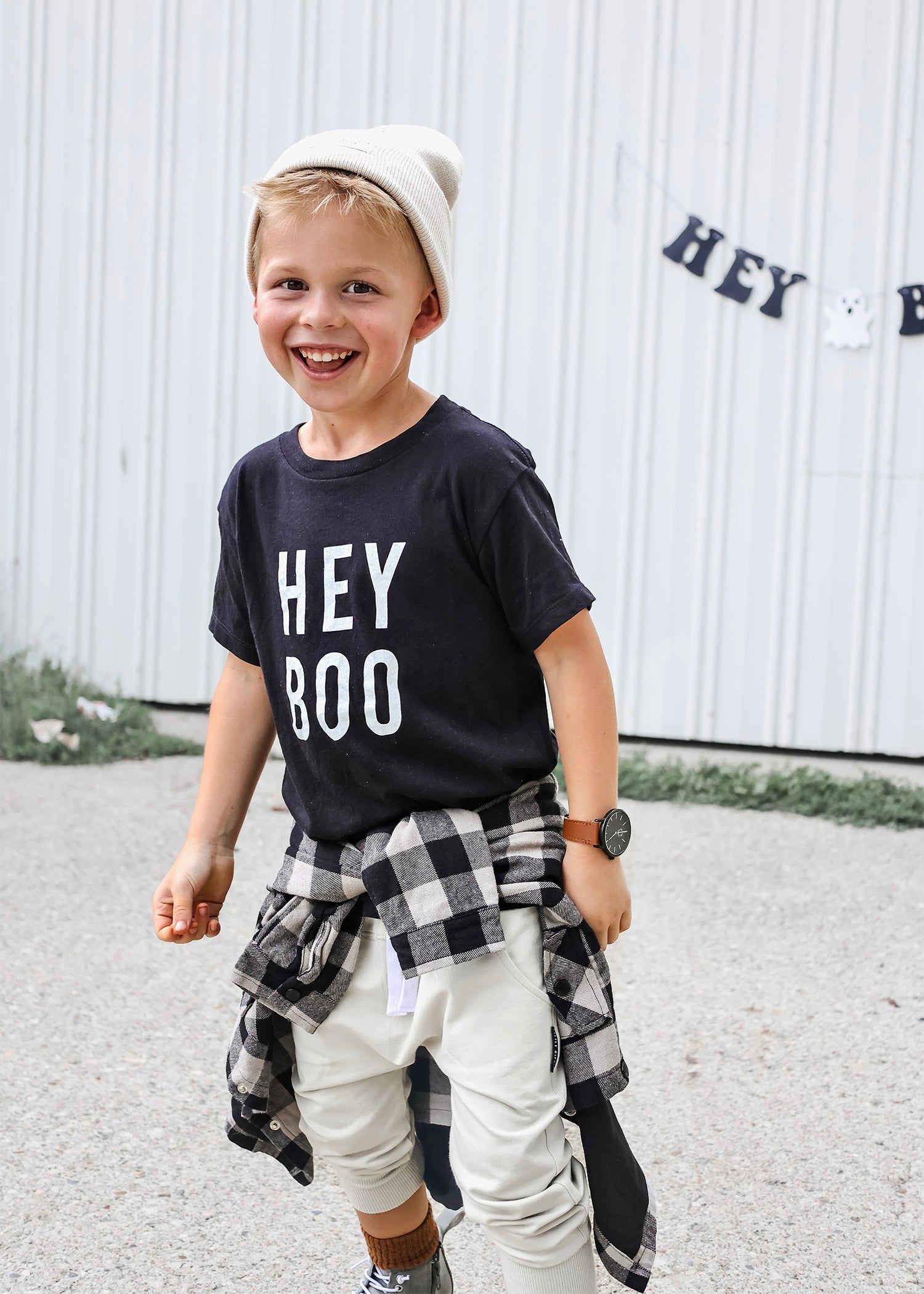 "Hey Boo" is part of our Fall collection. This shirt is a modern and minimal design tailored to all kids during the fall season.