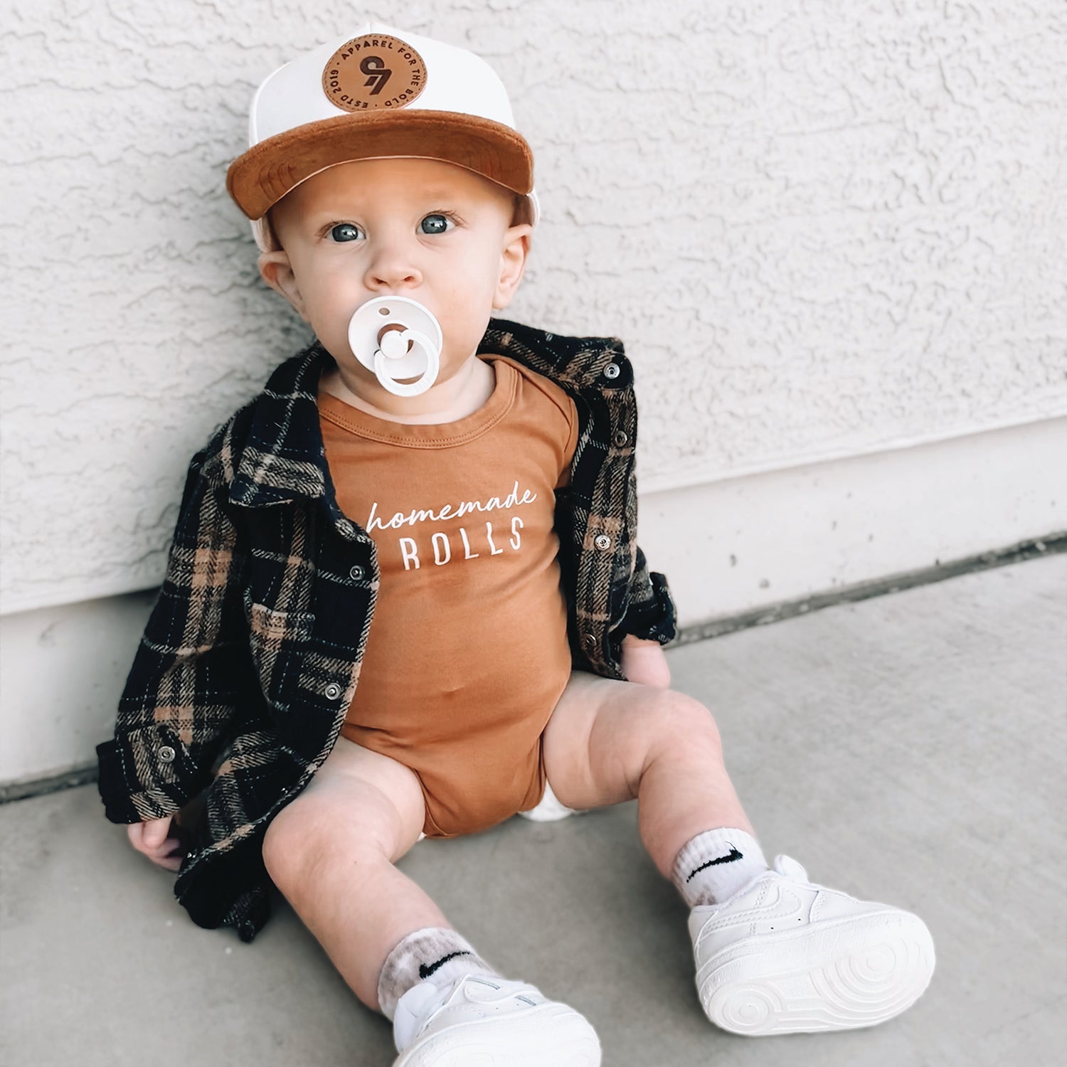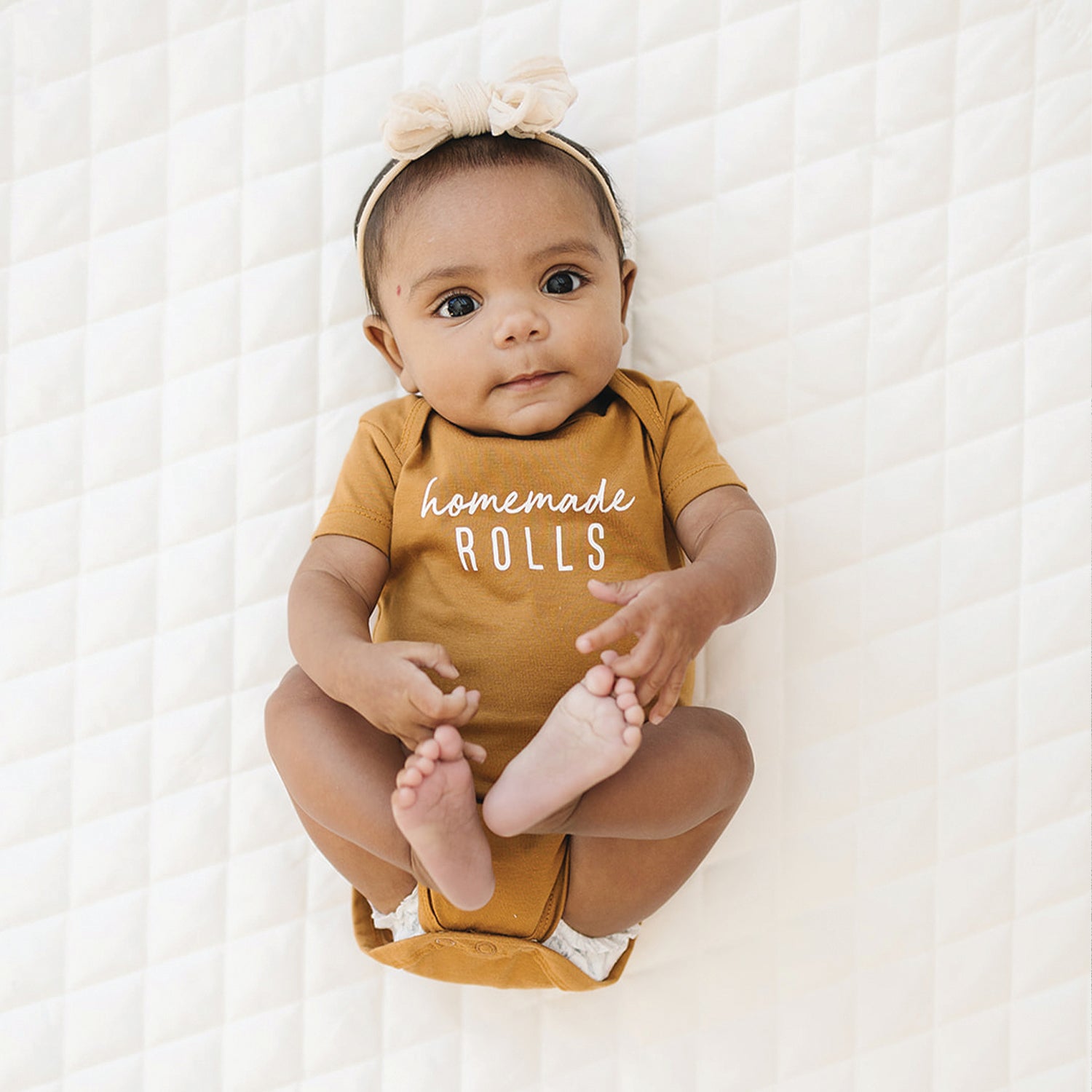 "Homemade Rolls" is part of our timeless collection. This onesie is a modern and minimal design tailored to all babies.