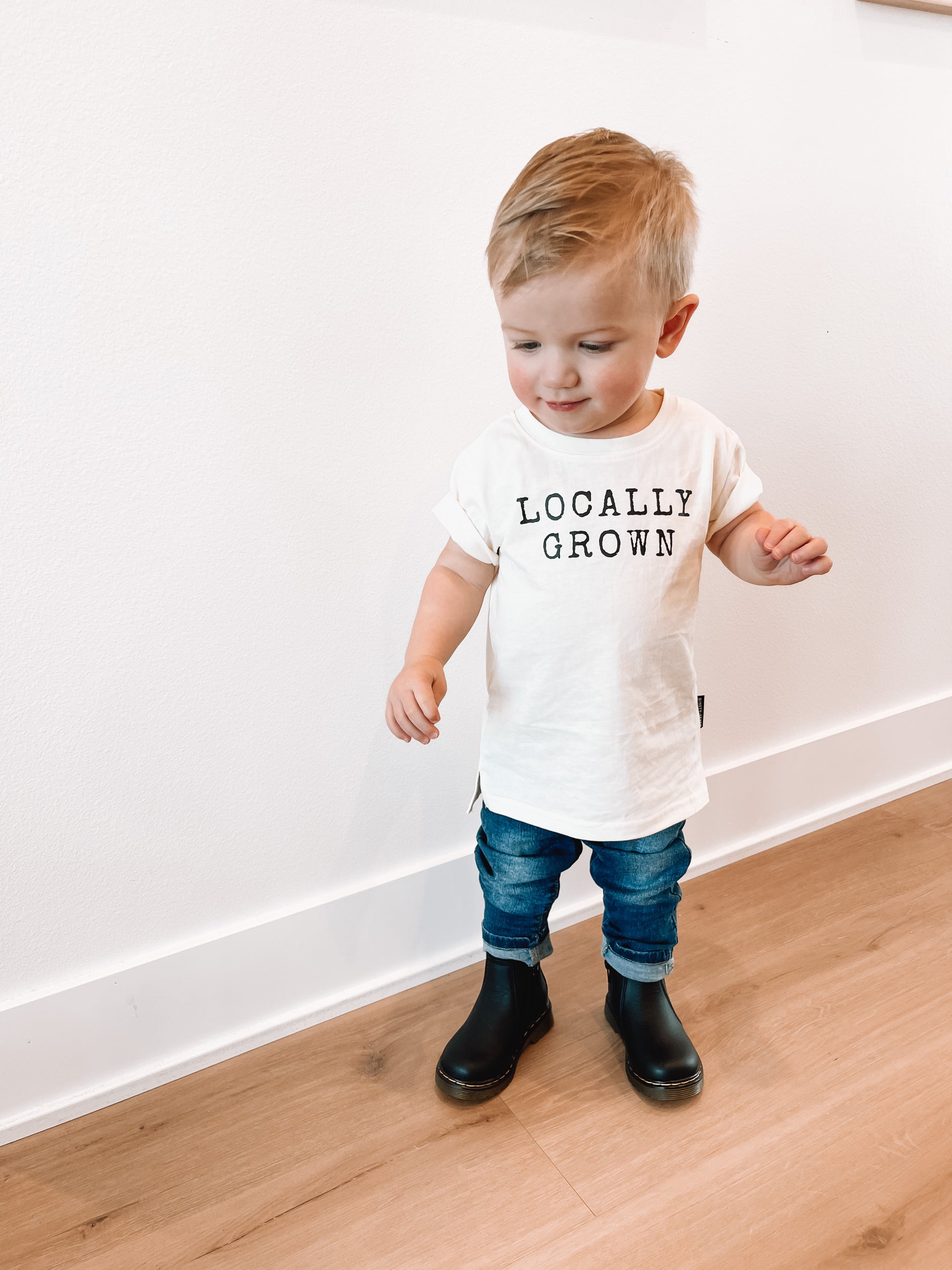 "Locally Grown" is part of our timeless collection. This shirt is a modern and minimal design tailored to all kids.