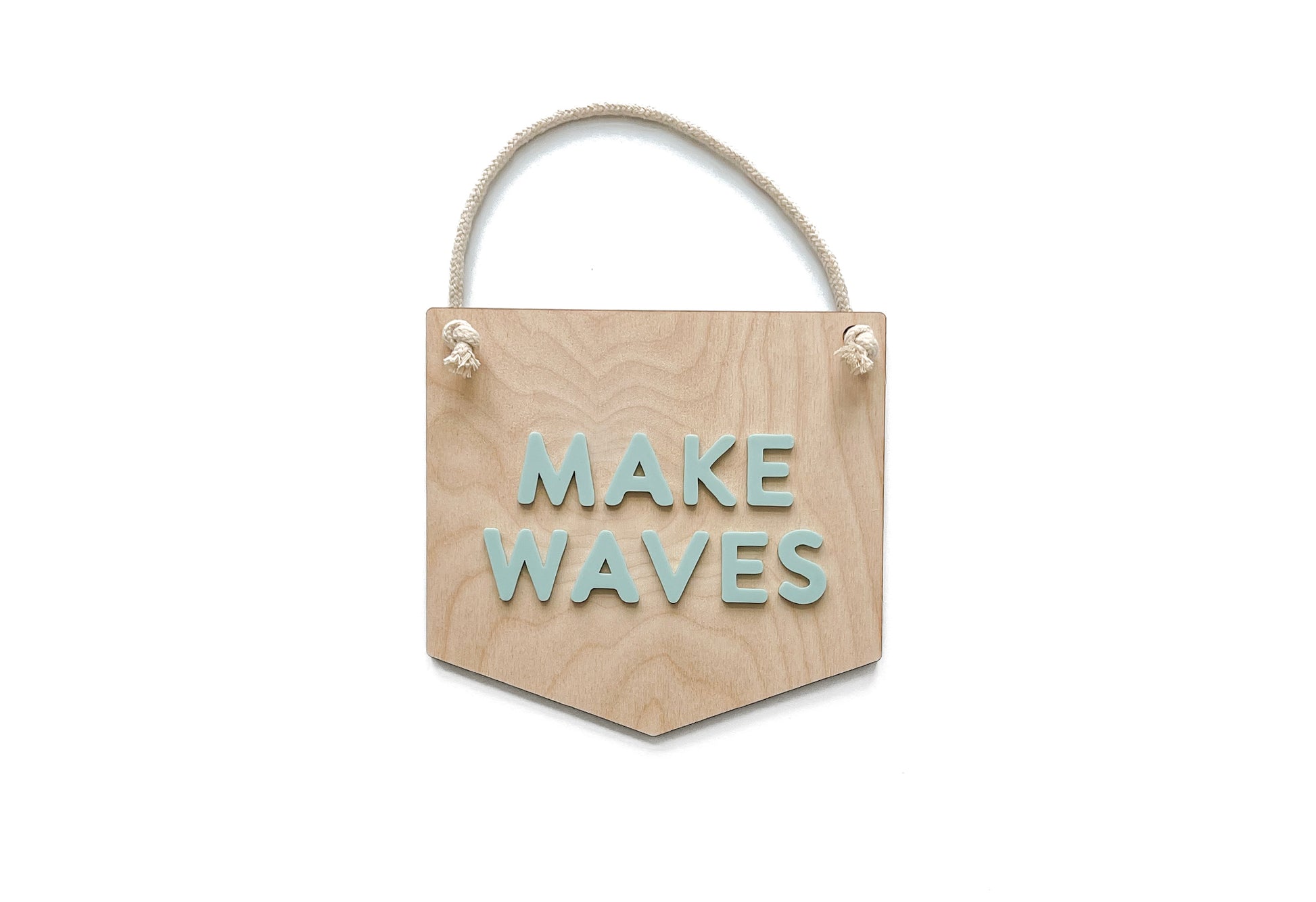 Complete your boho surfer kids room with our new Make Waves wall sign. Each piece is laser cut and hand crafted with high quality wood and acrylic.