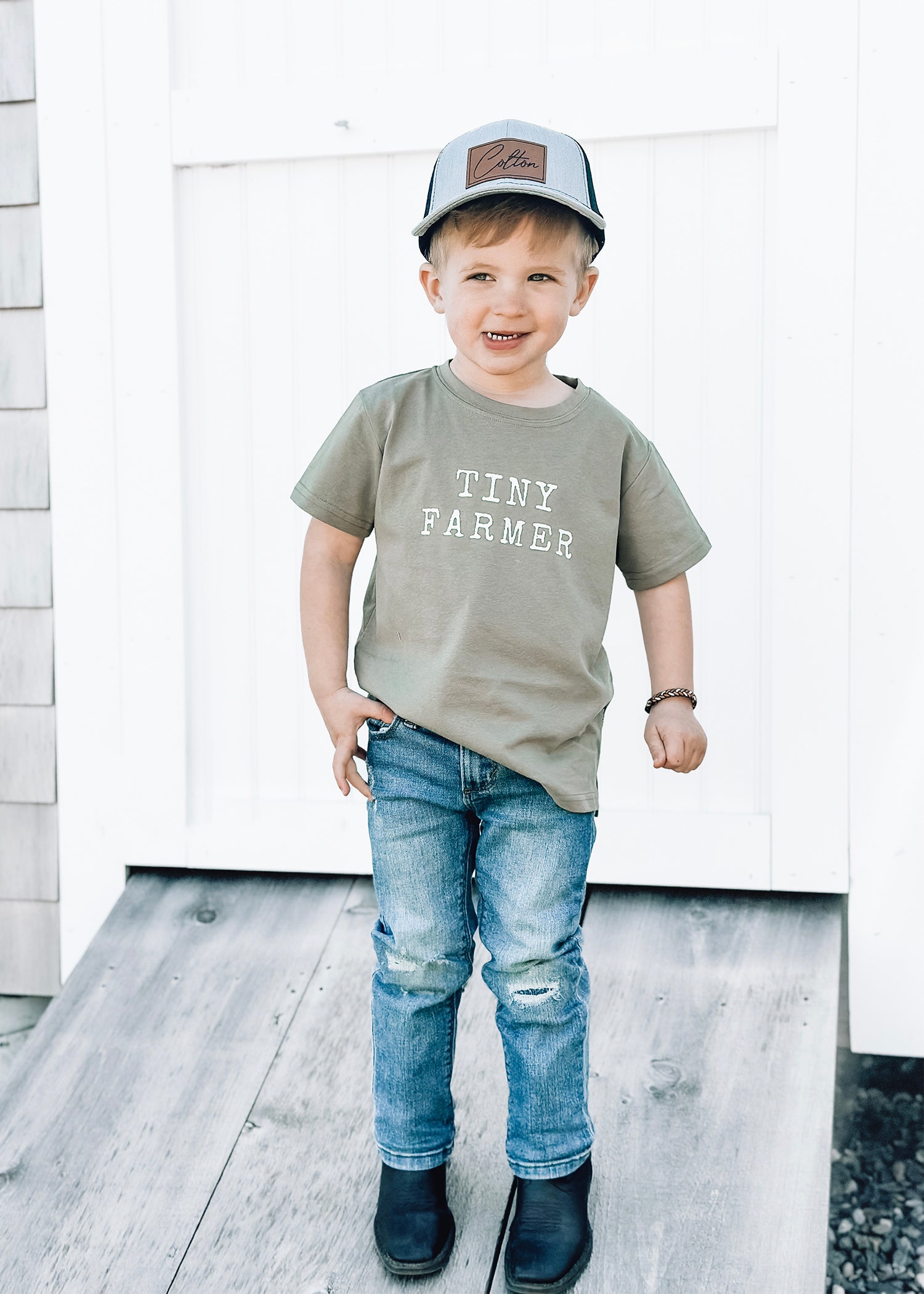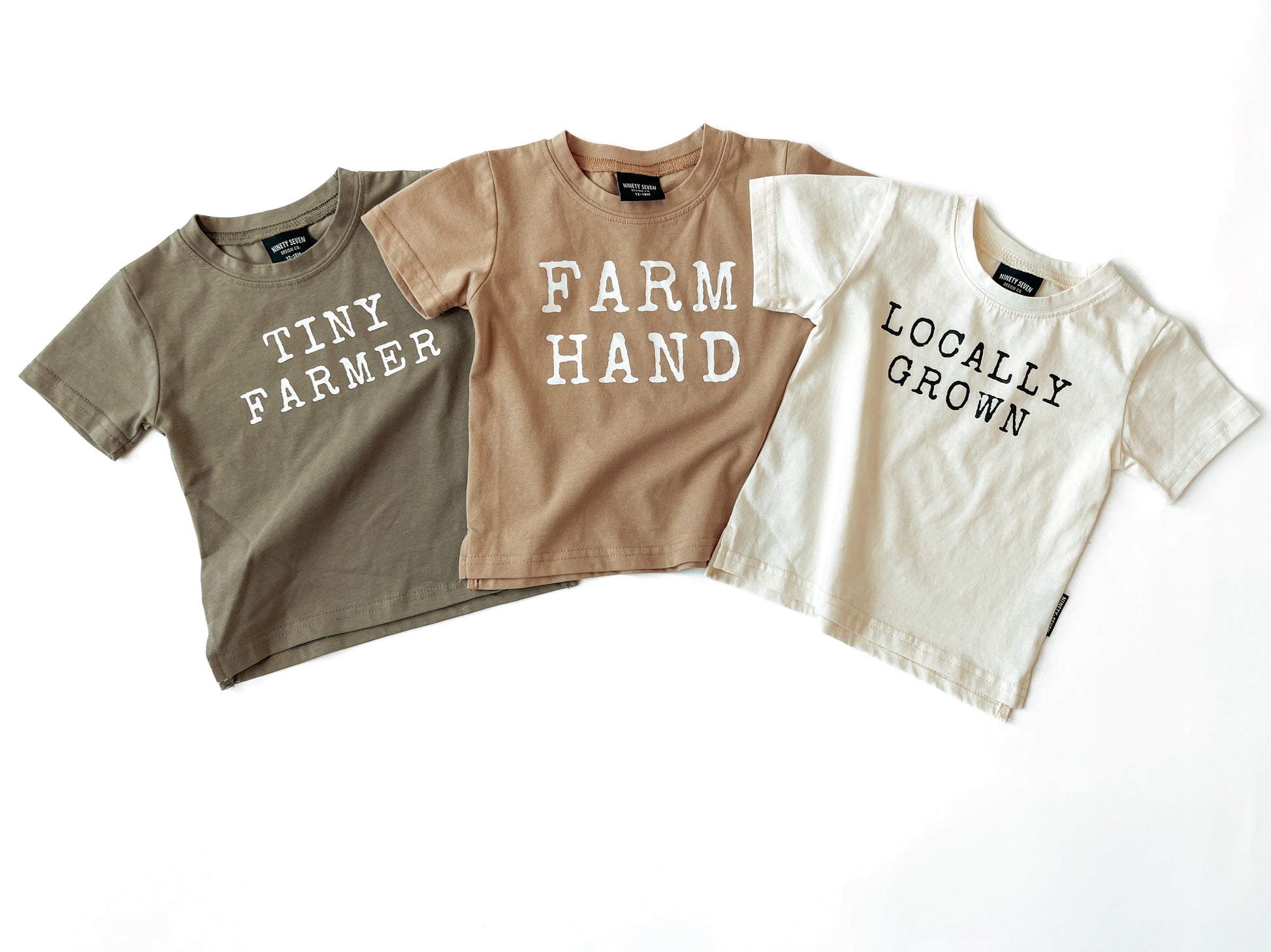 "Tiny Farmer" is part of our timeless collection. This shirt is a modern and minimal design tailored to all kids.