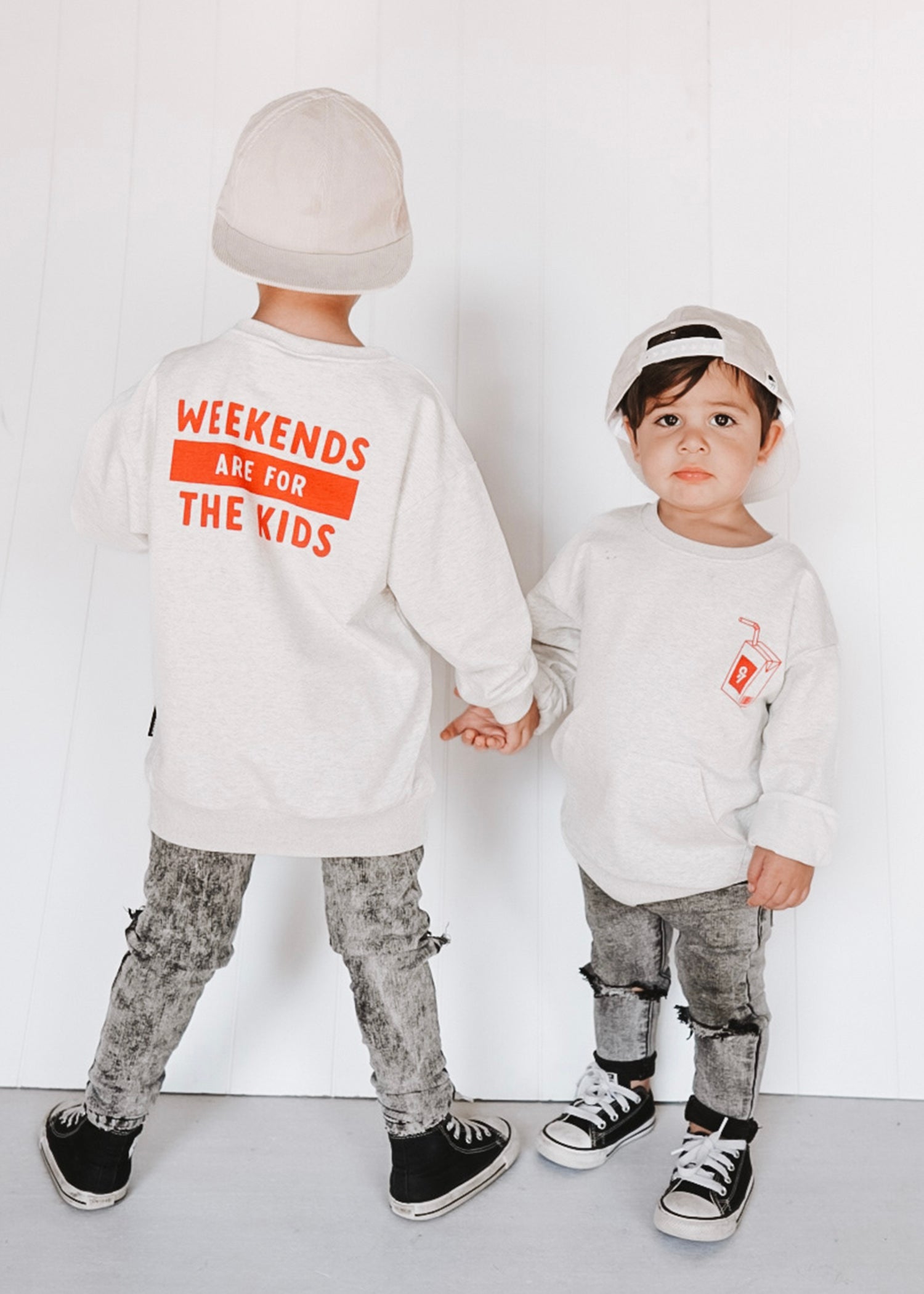 "Weekends Are For The Kids" is part of our Fall collection. This pullover is a modern and minimal design tailored to all kids.